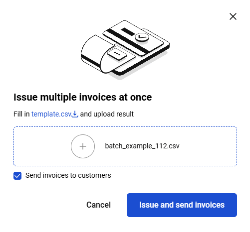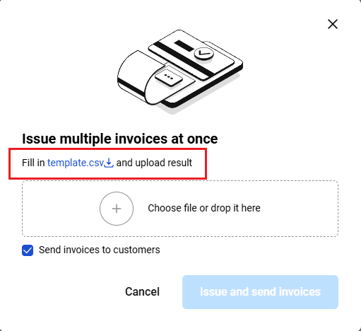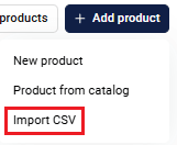 Then upload the completed catalog in .CSV format by clicking Import file with products: