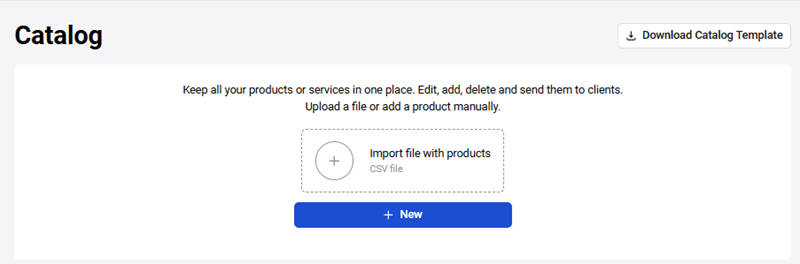 The Catalog section provides a quick way to select items when creating an invoice. To access the Catalog section, click