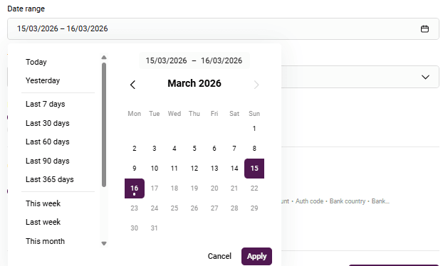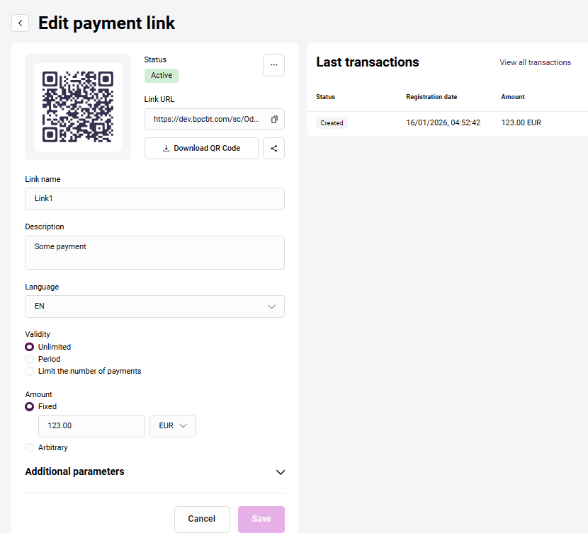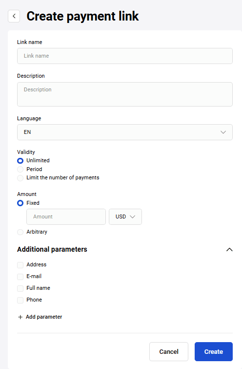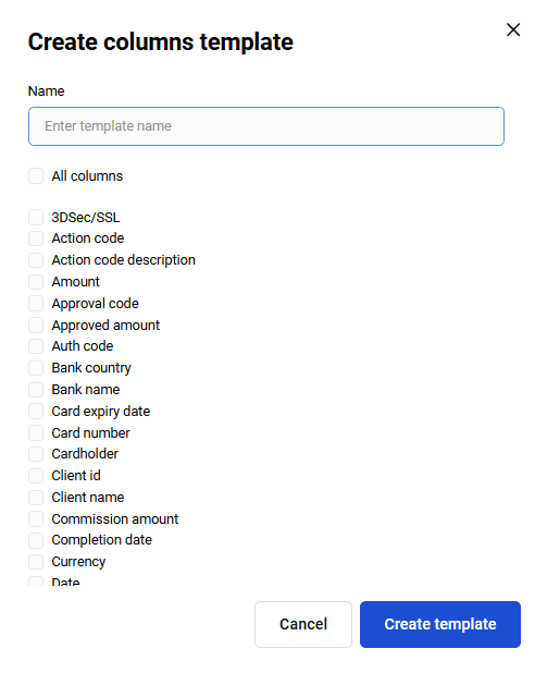 | Payment method | Payment method. Possible values: