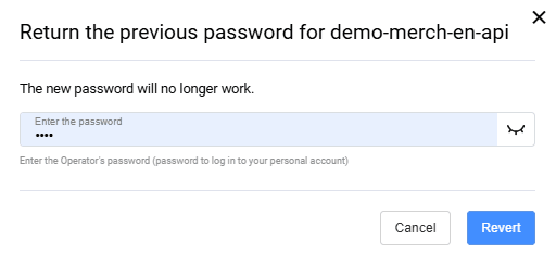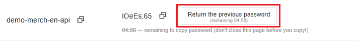 Once you have changed your password, you can return your previous password back within 5 minutes. Click Return the previous password and confirm the action in the newly opened window: