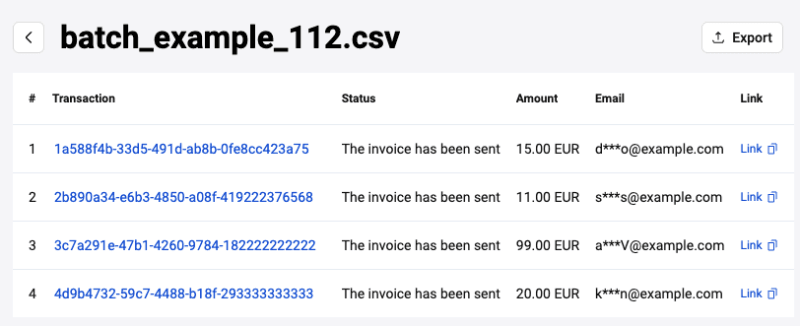 The main operations that can be carried out with transactions in the Personal Area are: