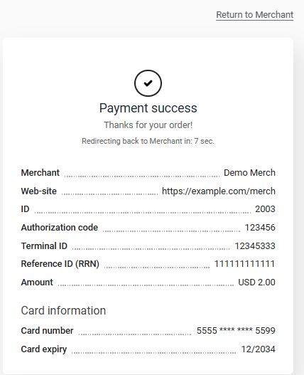 | Show final page | If enabled, allows you to display the final page upon payment completion |