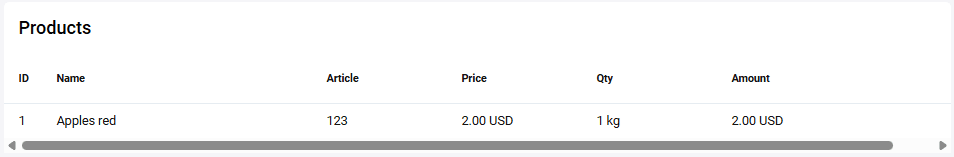 If the order contains a shopping cart, the table of cart items will be displayed. The set of displayed parameters depends on the configured OFD system. Edit the cart parameters, if necessary, and then click Confirm.