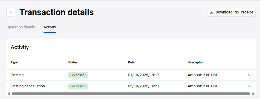 These operations are invoked by corresponding buttons on the Transaction details page. See the detailed description of each operation below.