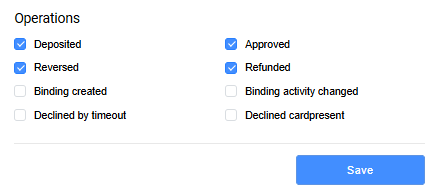Select the events for which a callback notification will be sent. The notification will be sent both when the operation is successful and in case of an error.