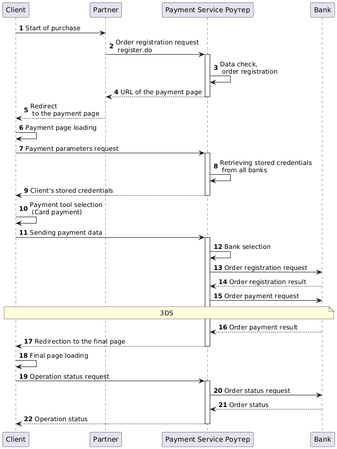 14. The bank provides the Payment Service Роутер with the order registration result.