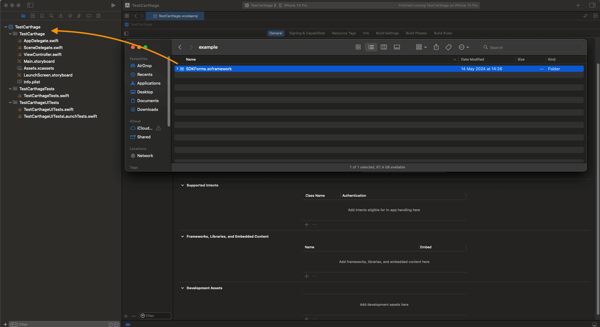 SDKCore.frameworkandSDKForms.frameworkfiles and add them to the project folder.
