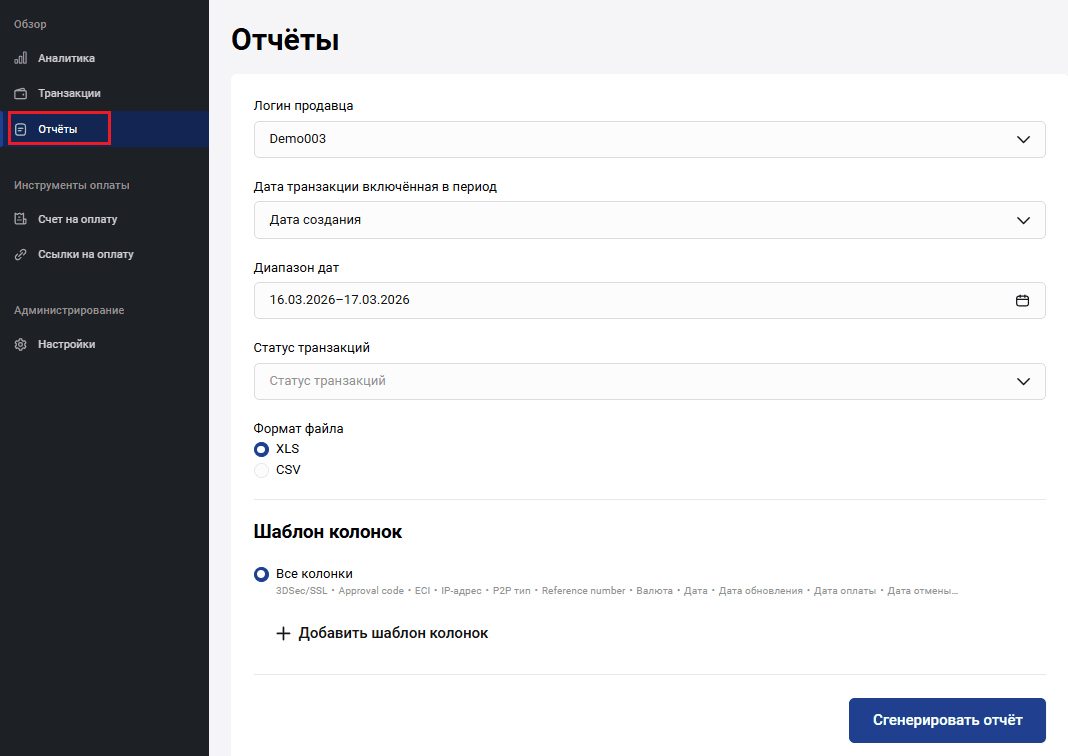Если выбран тип асимметричной подписи, кнопка Сгенерировать будет неактивна. Ключ для асимметричной подписи можно получить в службе поддержки.