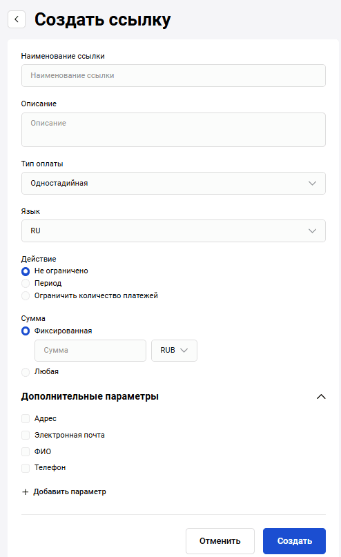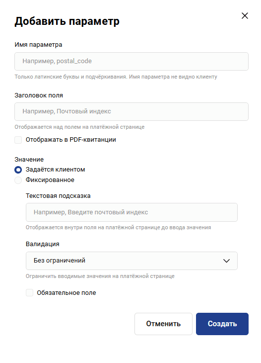 | Дополнительный параметр | Дополнительный атрибут пользователя, который будет передаваться оператору фискальных данных |