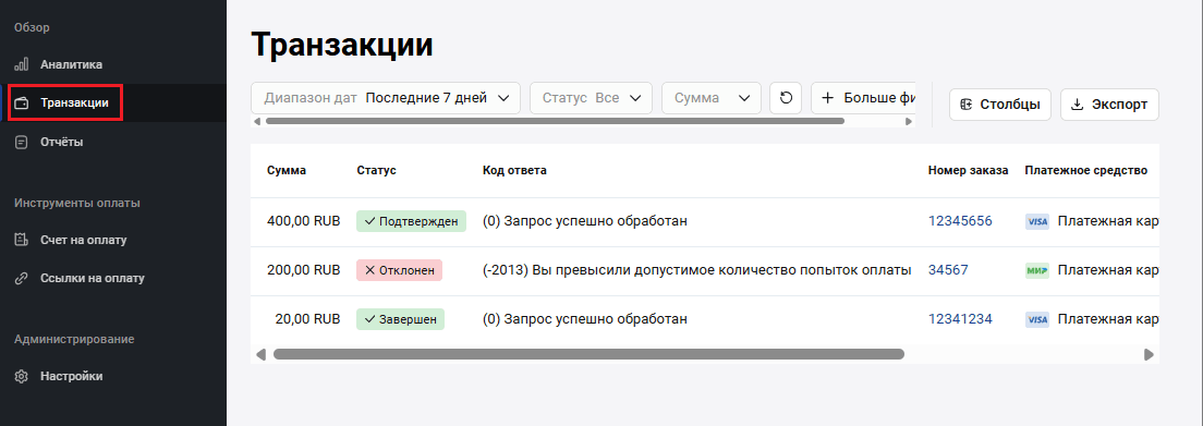 Если вы хотите отменить заказ до оплаты или предварительной авторизации, вы можете сделать это, нажав кнопку Отклонить на странице информации о транзакции.