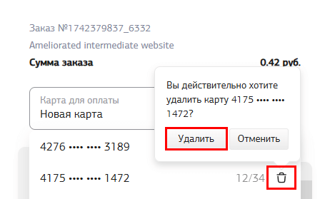 - При оплате на платежной странице Платежного сервиса с сохранением карты.