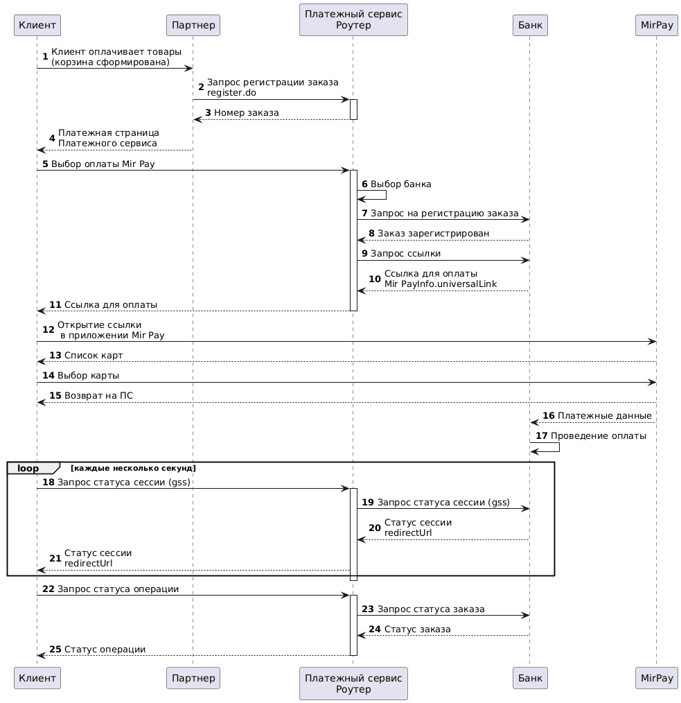 11. Платежный сервис Роутер перенаправляет Клиента на ссылку Mir Pay.