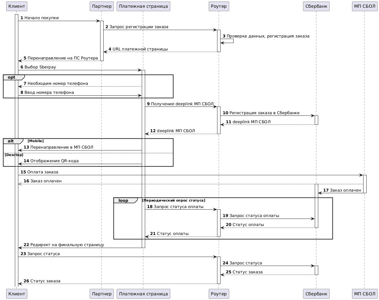 На платежной странице Платежного сервиса Роутер клиент может оплачивать заказы с помощью SberPay.