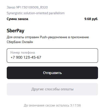 7-8. Если при регистрации заказа в Платежном сервисе Партнер не передал телефон Клиента (параметр phone), у Клиента запрашивается номер телефона.