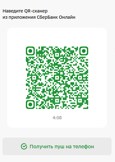 14. (Опция) При оплате с компьютера Клиент может по своему выбору произвести оплату по QR-коду или получить пуш-уведомление на телефон (может потребоваться ввод номера телефона).