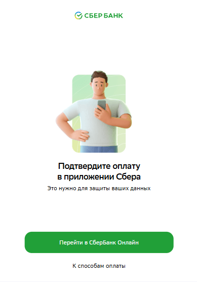 13. (Опция) Если Клиент открывает платежную страницу на мобильном устройстве, то отображается кнопка перехода в приложение Сбербанк Онлайн.