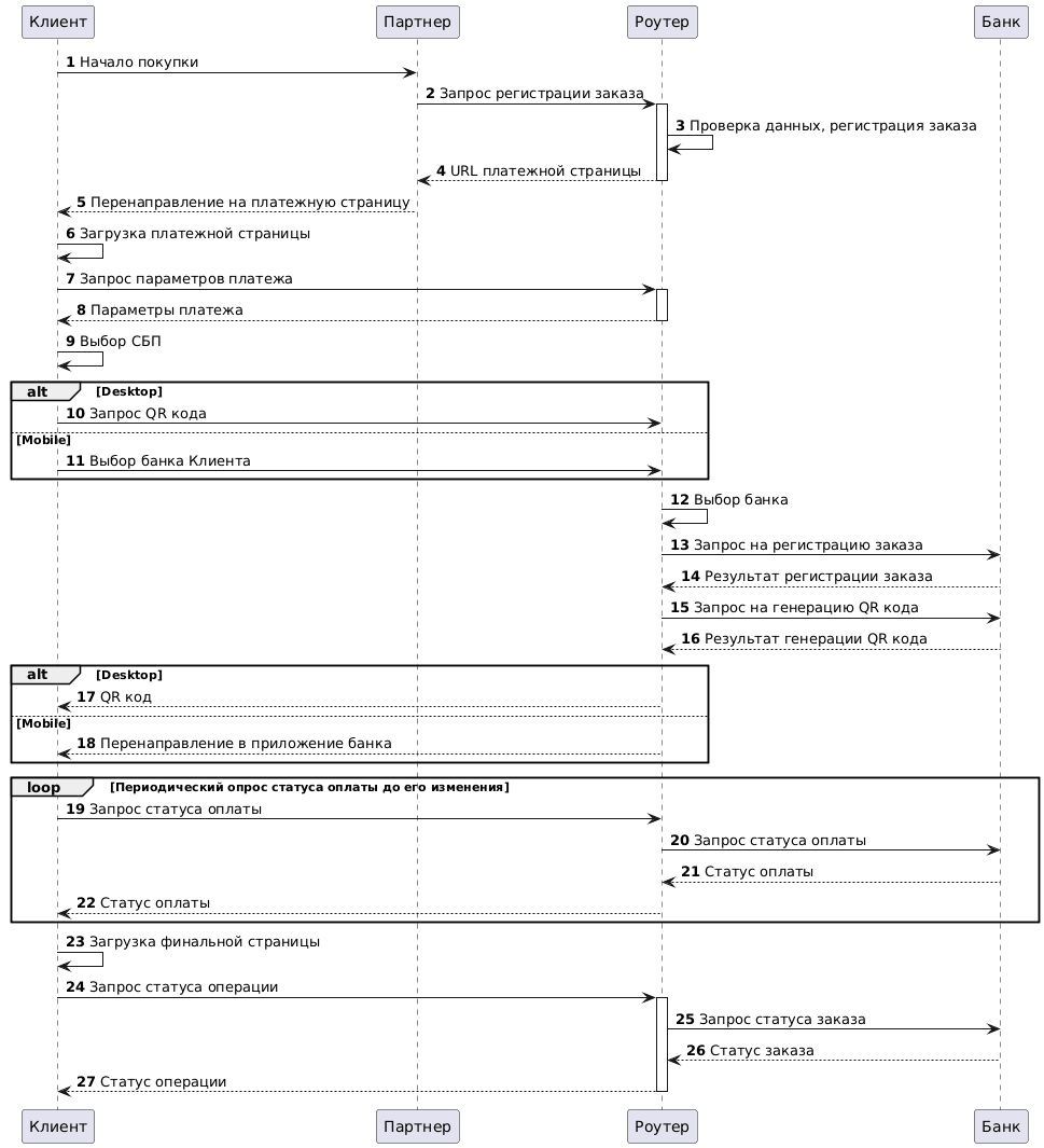 18. (Опция) При оплате с мобильного устройства Платежный сервис Роутер перенаправляет Клиента в приложение выбранного банка или на страницу онлайн-банка (в зависимости от настроек банка на стороне СБП).
