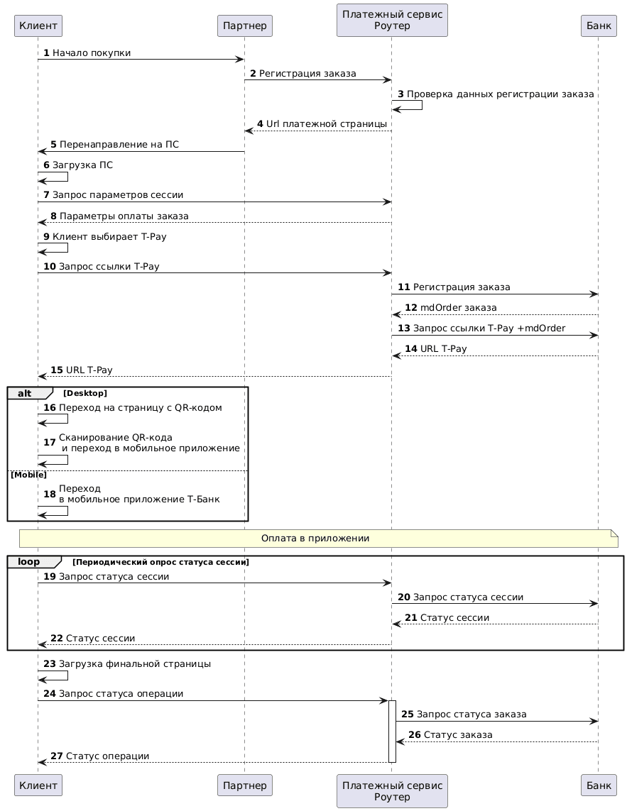 15. Платежный сервис Роутер передает платежной странице ссылку T-Pay. В зависимости от устройства Клиента дальнейшие шаги немного различаются.
